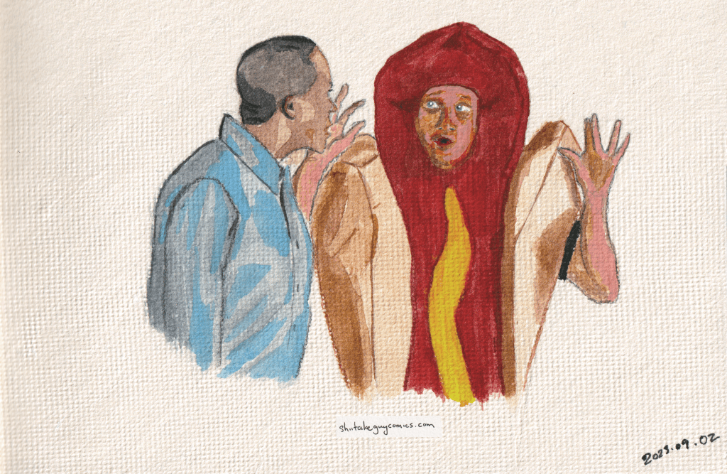 Hot Dog Sketch in mixed media (watercolor, gouache, and colored pencils)